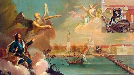 Нас интересует изображения Медного всадника мелким планом. Художник, правда, умер в 1780-1781г и видеть памятник до его открытия в 1782 не мог от слова "совсем". То ли Бухольц мог предсказывать будущее, то ли официалы напортачили с подтасовкой дат...