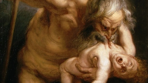 Миф о Сатурне (в греческой мифологии — Кронос) описывает мрачную судьбу титана, который пожирал своих детей, чтобы избежать предсказанного конца: один из отпрысков должен был его свергнуть. Этот миф стал источником вдохновения для двух величайших художников — Питера Пауля Рубенса и Франсиско Гойи. Их работы, несмотря на общий сюжет, настолько различны по настроению и передаче, что будто представляют два противоположных взгляда на человеческую природу, страхи и зло. Картина «Сатурн, пожирающий своего сына» (около 1630 года), созданная Рубенсом, демонстрирует все атрибуты стиля барокко...