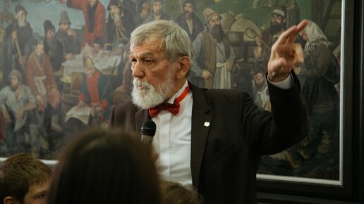 Сегодня расскажу про картину, которую подарил Музею Ижевска – портрет Евгения Шумилова, почётного гражданина столицы Удмуртии, искусствоведа, исследователя, историка-краеведа. Я "горжусь" что есть такие люди как Евгений Шумилов и меня наполняет радость выполнить такую работу. Это не типичный портрет, а все изображения на полотне – не случайны. Каждая деталь четко формирует целостный образ героя. Крупным планом изображен Евгений Шумилов, позади него – Андрей Фёдорович Дерябина, биографией которого активно занимался герой картины...