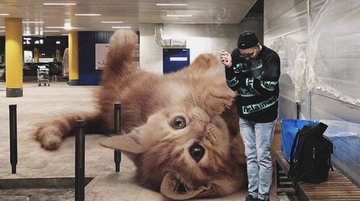 Его проект называется если бы кошки гиганты были вокруг нас Почеши живот коту! Мы приказываем!