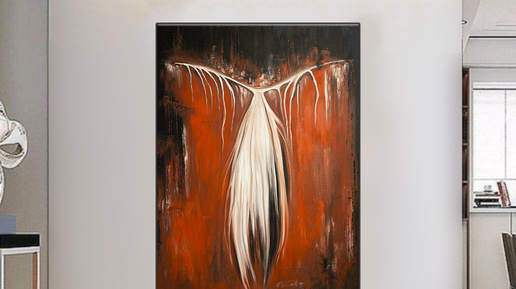 Купить картину маслом абстракция в красном цвете Создание ангела.