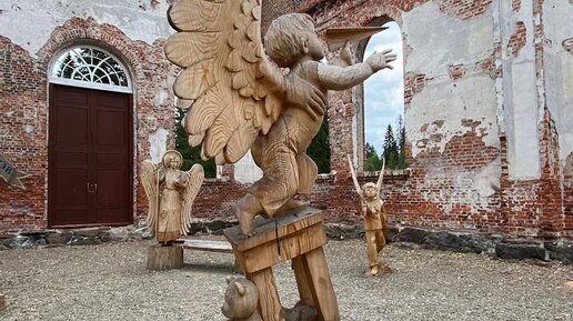Нет, не подумайте, ангелы не захватили Карелию. Живут там обычные люди, совсем не ангелы. Просто в горном парке Рускеала выставка деревянных скульптур "Обитель ангелов", а рядом в Лахтенпохья в кирхе Яккима "Город ангелов". Выставки разные, но есть и общее - посыл к доброму, вечному. Сначала посетили "Обитель ангелов" в Рускеала. В полусфере (под небесным сводом) расположена скульптурная композиция объединённая общим замыслом. Образы и метафоры легко читаемы, но дадим слово авторам. Вокруг центральной композиции разворачиваются отдельные сценки из жизни ангелов, так похожих на людей...