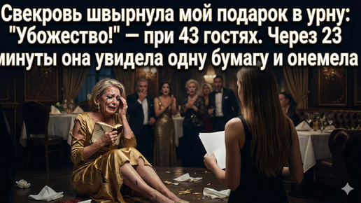 Свекровь швырнула мой подарок в урну: «Убожество!» — при 43 гостях. Через 23 минуты она увидела одну бумагу и онемела.