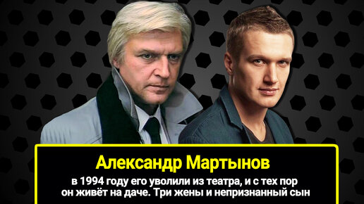 В 1994 году его уволили из театра, и с тех пор он живёт на даче. Три жены и непризнанный сын 74-летнего Александра Мартынова