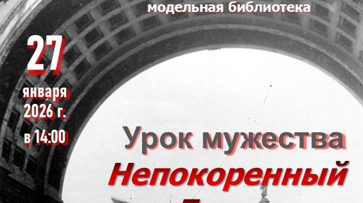 Урок памяти «Непокоренный Ленинград» Дата: 27 января 2026 г. Время: 14.00 – 15.00 Место: ЭДМБ Приглашаем на урок памяти, посвященный героизму и стойкости жителей осажденного города. В ходе часа мы обсудим беспримерный подвиг людей, которые проявили мужество в условиях полной изоляции. В программе – хроника жизни в блокадном Ленинграде через документальные свидетельства и литературные произведения. Участники смогут погрузиться в атмосферу того времени,...