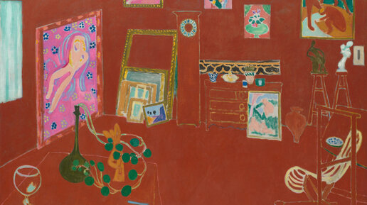 Перед нами — картина-портфолио. Здесь Матисс (https://t.me/artgallery/5131)представил нам сразу несколько своих произведений. И не только живописных!