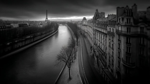 Создано на основе запроса: view from the top of the Eiffel tower of the Paris rooftops. high contrast, sharp focus, hyper-realism, high resolution, high detail. cinematic, Rembrandt lighting, chiaroscuro...