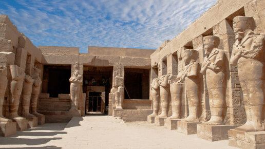Карнакский храм— крупнейший храмовый комплекс Древнего Египта, главное государственное святилище Нового царства. Ансамбль включает храмы, посвящённые фиванской триаде — верховному богу Амону-Ра, его супруге Мут и сыну Хонсу. Расположен на территории древних Фив в современном Карнаке — небольшом селении, лежащем на восточном берегу Нила в 2,5 км от Луксора. С 1979 года этот храм включён в список Всемирного наследия ЮНЕСКО. Первое свидетельство о существовании культа бога Амона-Ра в древнеегипетских Фивах относятся к эпохе Среднего царства...