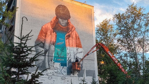 Мурал с душой: как московский художник оживил стену в хабаровском Авиагородке