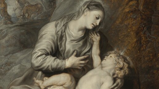 Поговорим сегодня о Ван Дейке. Давайте проникнемся глубоким уважением к этой картине, к данной теме "Отдых на пути бегство в Египет". Это нежно, пластично, удивительно для своей эпохи. Уже отходит маньеризм и занимает прочное место барокко. Ну, сразу к компоновке. Пересечение диагоналей на сердце Девы Марии. На сердце держит руку. В овал вписывается очень гармонично благодаря наклону головы к ребенку Иисусу. Очень трогательно. Но я, честно говоря, долго думала, почему лицо Девы Марии не по золотому сечению? Или ее колено? Да? Ну можно было сверху добавить и снизу...
