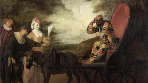 Картина, и особенно её фон, находится в посредственном состоянии сохранности: небо довольно неприятного зелёного цвета, а деревья справа сильно перекрашены. И это хорошо объясняет, почему специалисты колеблются с авторством, выбирая между Клодом Жилло (1673–1722) и его учеником Жан-Антуаном Ватто (1684–1721). Сюжет картины ясен — он взят из комедии в трех действиях Нолана де Фатувиля «Арлекин, император Луны». Пьеса представляет собой длинный...