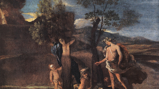 Эта картина известна с начала девятнадцатого века. Она была выставлена в Париже в 1925 году как работа Никола Пуссена (1594-1665), но в 1926 году в ретроспективном томе, посвященном выставке, была переклассифицирована в работу "неизвестных художников семнадцатого века". Картина находится далеко не в идеальном состоянии. Некоторая неуклюжесть работы может быть объяснима поспешностью её выполнения, которая, без сомнения, связана с ранним периодом работы Пуссена в Риме, когда он отчаянно пытался выбраться из нищеты...