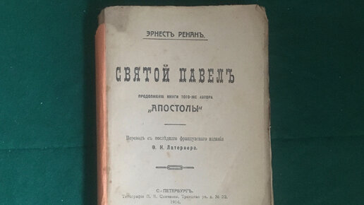 Эрнест Ренан - «Святой Павел», пер. с французского издания, Санкт-Петербург, Типография П.Я. Синченко, 1914 год издания. Книга - продолжение сочинения «Апостолы»; автор описывает деятельность Апостола Павла, начиная с его первого путешествия, миссии на Кипр и заканчивая пленением и арестом. В заключение изложен дополнительный краткий обзор деятельности Павла. Данную небольшую книжку Лис Ренар получил «в довесок» к паре других книг более хорошей сохранности. Минус экземпляра в его мягком издательском переплёте, который, к сожалению, не способствовал отличному сохранению...