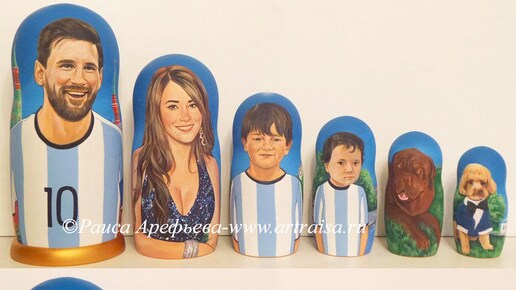 Матрёшки с портретами - художественная РОСПИСЬ портреты, шаржи на матрешках по фотографиям - Доставка 3 дня по России и в любую страну мира - тел.+7(916)138-83-82 Раиса Арефьева, являясь художником-портретистом, много работающим с натуры, занимается росписью матрёшек начала с 2005 года. Её роспись отличается портретным сходством и живописностью. Благодаря творческому подходу, матрешки Раисы Арефьевой сразу стали популярны и расходятся по частным коллекциям многих стран мира, в числе которых Франция,...