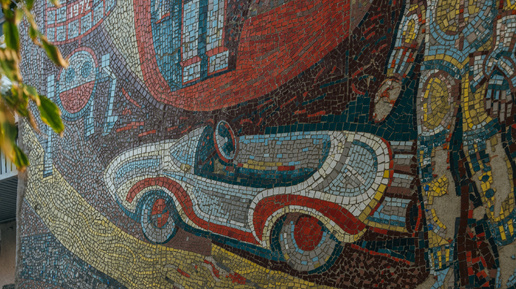 Проектные зарисовки, увлечённые молодые люди и автомобили, словно из будущего. Яркую мозаику советских времён можно увидеть на фасаде дома в Автозаводском районе Нижнего Новгорода, в месте, где всё буквально пронизано историей автомобилестроения. Рассматриваем мозаику «Клуб юных автомобилистов». Увидеть монументальную мозаику можно на фасаде трёхэтажного дома на улице Юлиуса Фучика, 1. Она занимает одну из стен здания, немного заворачивая за угол. Здесь располагается известный ещё с советских лет детский клуб моделирования...
