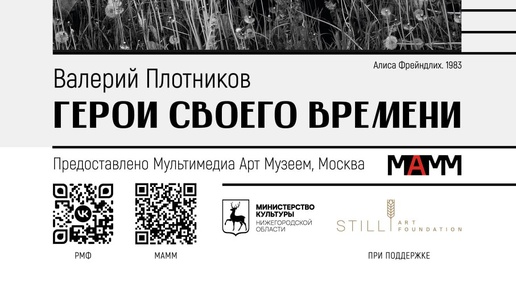 ). Мультимедиа Арт Музей, Москва представляет выставку «Герои своего времени» классика портретной фотографии Валерия Плотникова — автора сотен портретов выдающихся деятелей советского и российского искусства, включая Владимира Высоцкого, Булата Окуджаву, Михаила Барышникова, Святослава Рихтера, Олега Янковского, Вячеслава Зайцева и др...