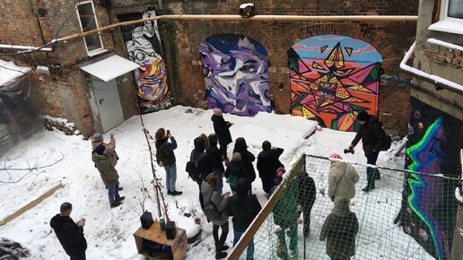 В нем есть работы граффити-художников, коллажистов и ЖЭК-арт. В субботу, 28 ноября 2020 года, в Самаре для посетителей открылся первый арт-двор . Здесь, в районе улицы Ленинградской, сформировалось пространство, которое приняло уличных художников...
