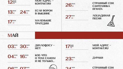 Уважаемые зрители и друзья Нового Арт Театра🎭 Публикуем для вас афишу на апрель и май💫 Бронируйте билеты на сайте театра — art-teatr.ru А также, по телефону: +7 (916) 460-37-62 и +7 (495) 510-56-23...