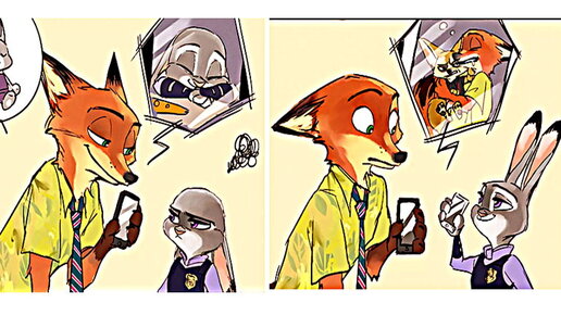 Сегодня предлагаю посмотреть арты о том, как Джуди и Ник проводят свободное время, шутят друг над другом, как отмечают праздники и примеряют карнавальные костюмы. Будут не только арты, но и мини- #комиксы без слов (все шутки понятны без лишних фраз). #Зверополис - яркий и запоминающийся диснеевский семейный #мультфильм . В нём было всё, чтобы завоевать сердце зрителя: детальная рисовка, детективный сюжет, драма и комедия. Наши герои стали напарниками, а в конце истории, Ника тоже приняли на работу в полицию...