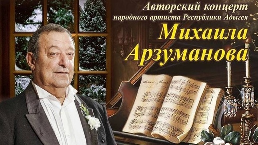 Авторский концерт Михаила Арзуманова «Для Вас, от всей души» состоится 29 ноября в Малом зале КЗ «Нальмэс» Концертного объединения Республики Адыгея. Певец исполнит самые известные и любимые всеми песни - «Моя Республика», «Мой Кавказ», «Ликуй, моя Адыгея», «Песня о Майкопе», «Танго любви», «Лишь одна» и другие популярные композиции. - Михаил Арзуманов - композитор, педагог, певец, артист Камерного музыкального театра Республики Адыгея имени А. А. Ханаху, один из самых ярких и интересных исполнителей в Адыгее...