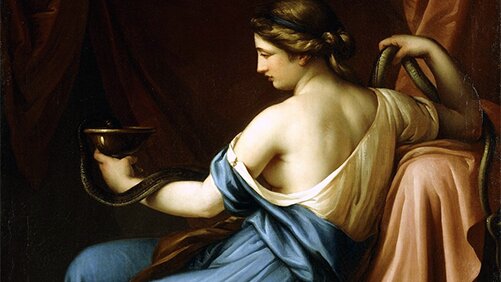 Имеющие отношение к медицине знают, что Клятва Гиппократа начинается с упоминания имени Гигиеи: "Клянусь Аполлоном врачом, Асклепием, Гигиеей и Панакеей, всеми богами и богинями..." Так кто же такая Гигиея? Справедливости ради надо сказать, что Гигиея - не "урожденная" богиня. Она дочь Асклепия, обученного искусству врачевания кентавром Хироном. Асклепий был настолько искусным врачевателем, что был наделен Зевсом бессмертием и принят в сонм олимпийских богов. Поэтому, наверное, и Гигиея получила звание богини...