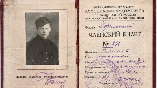 Не знаю кому как, но мне интересно рассматривать не только артефакты, но и документы из прошлого. Сегодня хочу показать вам любопытный документ, который хранится в семейном архиве, это удостоверение ОМАХРР (Объединение Молодежи Ассоциации Художников Революционной России), принадлежавшее моему дедушке, Блинову Николаю Алексеевичу. На фото он молодой, красивый, ему тут 21 год. Удостоверение он получил в ноябре 1929 года, во время учебы в Уфимском Техникуме искусств, весь 1930 год исправно платил взносы по 5 (копеек? рублей?) (листайте стрелочку вправо)...