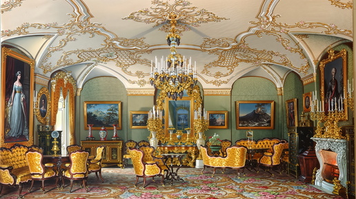 Продолжим знакомство с интерьерами дворца! Далее буду использовать информацию с официального сайта дворца с небольшим рерайтом, так-как не нашёл более ёмких и подробных описаний истории дворца и истории акварелей! Из статьи О. В. Петроваой — кандидата искусствоведения, главного научного сотрудника Государственного музея-заповедника «Гатчина», хранителя коллекций архитектурных чертежей, акварелей, печатной графики и рукописей! В серию акварелей, написанных Гау, вошли и изображения парадных залов полукруглых крыльев дворца...
