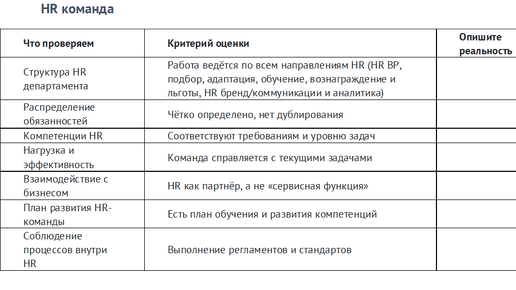 Чек-лист для аудита и построения HR системы в компании