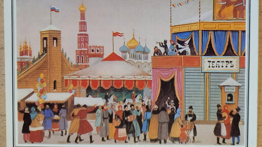 Сегодня покажу вам открытки №7, 8, 9 ("Балаган", "Театр при царе Алексее Михайловиче", "Федор Волков и Первый Русский Государственный театр"). Продолжаю публиковать набор открыток "История русского театра", набор состоит из 32 открыток с работами художника Владимира Семенова. Текст ниже в статье перепечатан с оборота этих открыток.