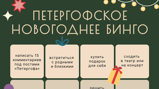 Если вы еще не успели подвести итоги 2025 года (слишком увлеклись приготовлением оливье и селедки под шубой🤩), наше петергофское бинго станет отличным поводом поставить финальную точку в этом вопросе🎯 Отмечайте, что из предложенного списка вы успели сделать в 2025 году, и делитесь результатами...
