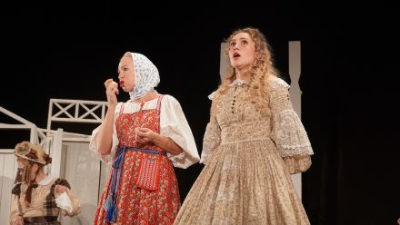 Любовь, интриги, и классический сюжет с переодеванием. Все это пушкинская «Барышня-крестьянка». Спектакль на сцене центрального дома литераторов на фестивале «Школьная Классика» показал Череповецкий камерный театр Перед зрителями хорошо известная история о вражде соседей-помещиков Григория Муромского и Ивана Берестова. Именно эти обстоятельства и побудили юную Лизу Муромскую в исполнении Анастасии Мироновой переодеться крестьянкой и отправиться в лес, чтобы увидеть молодого барина Алексея Берестова в исполнении Матвея Пирушкина...