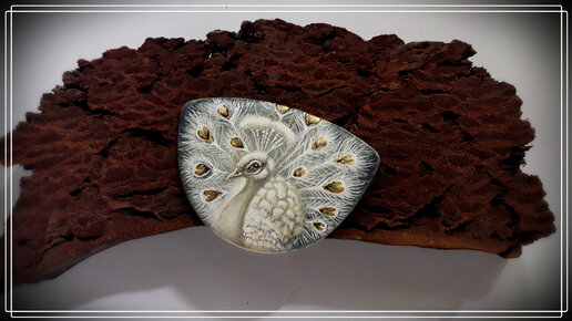 Белый павлин очень красивая птица. Именно такого красавца я решила сделать центром нового украшения. Задумывала сделать "белое на белом", но работа, как это часто бывает, внесла свои коррективы. И павлин получился особенный - декоративный и очень нарядный Вообще-то на белом кахолонге я думала нарисовать розы. Но увидела снимок белой птицы, и поняла, что лучшего камня под неё не найти. Даже форма кабошона словно была выточена под павлиний хвост Когда речь идет о миниатюрной живописи по камню, рисунок делается точно под его размер...