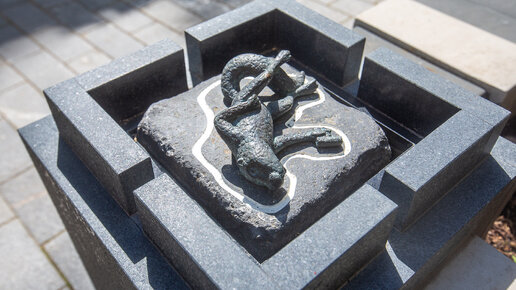 Если вы окажетесь в московском Среднем Кисловском переулке (я шёл от метро "Арбатская", хотя вблизи станций метро много - всё-таки самый центр Москвы), обязательно загляните во дворик дома 5/6с14. И хотя кажется, что он отгорожен от этого мира вот таким неприветливым забором, калитка открыта. Войти во дворик может каждый. Что же скрывает дворик? Явно он необычный, если его ворота сторожит скульптурная такса:) Как бы настоящая такса забралась бы на такую верхотуру, совершенно не представляю:) А вот мы и за калиткой...