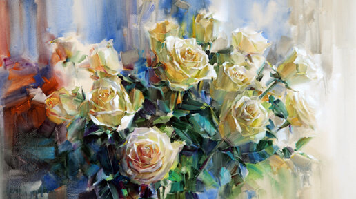 Белые розы, Как рисуют Жостовские цветы. Живопись маслом