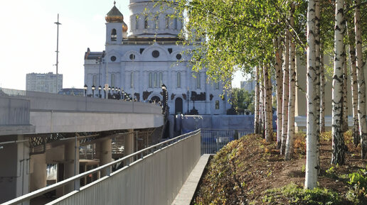 Берёзовая роща в центре Москвы с видом на Храм Христа Спасителя