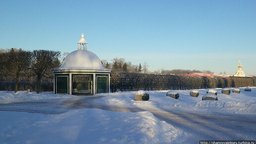 С двух сторон центральное пространство Верхнего сада Петергофа устроенного по принципам французского регулярного парка ограничивают деревянные галереи берсо — массивные аркады собранные из перекладин...