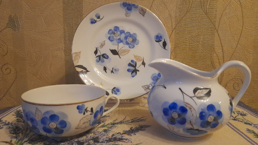 В первое моё посещение комиссионного магазина "Винтаж-кураж и антураж" я купила там вот эту очень понравившуюся мне чайную чашечку Ленинградского фарфорового завода. Их было 3 штуки, и все три с трещинками. Выбрала чашечку с наименьшими потерями. И жалею, что взяла только одну. Очень интересная форма и потрясающе красивая роспись. Дома сразу стала выяснять, что за сервиз, кто автор. Сервиз называется "Синие махровые цветы", создан в конце 40-х, производился в 50-60-х годах. Форма - "Репка", автор формы - Серафима Евгеньевна Яковлева...