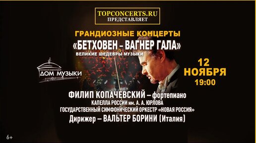 🎵✨ Погрузитесь в музыкальное путешествие от вдохновителя к мастеру! 12 ноября в 19:00 мы приглашаем вас в Московский Дом Музыки на уникальный концерт «Бетховен-Вагнер Гала», посвященный великолепному наследию Людвига ван Бетховена и его неоспоримому влиянию на музыкальный гений Рихарда Вагнера. 🎻 Откройте для себя, как мелодии Бетховена эхом отразились в эпических оперных произведениях Вагнера, ощутите глубину их музыкальных диалогов. Вечер будет полон симфонических произведений, которые оформили фундамент для вагнеровской революции в опере...