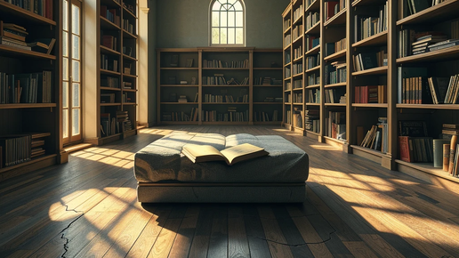 Эдмунд вошёл в библиотеку в 10:03. Часы на стене показывали 9:17, но секундная стрелка стояла. Он подошёл к первому стеллажу. Полки были пусты. Но когда он провёл рукой по месту, где должна была стоять книга, пальцы ощутили лёгкое сопротивление — будто воздух сгущался в форме тома. Он попытался взять «книгу». Пальцы прошли сквозь неё, оставив в воздухе мерцающий след. Он опустился на колени. На полу — тени книг. Они не совпадали с расположением полок: Когда он попытался сфотографировать тени, снимок вышел чёрным, с бледными контурами символов...