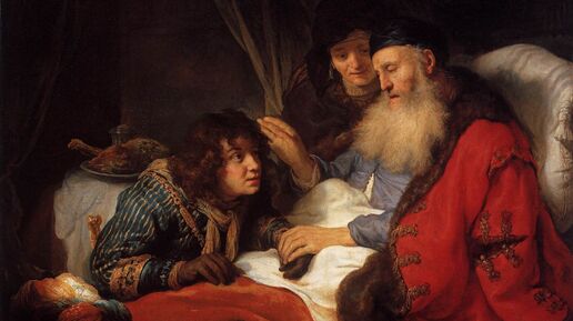 Как и в случае с жертвоприношением Исаака/Авраама, эту сцену можно трактовать двояко. Кто кого благословлял? Иаков или Иакова? В Книге Бытия есть оба варианта. Начнем с первого по хронологии. У Исаака, которого отец чуть было не принёс в жертву богу, было два сына от Ревекки – старший Исав и младший Иаков. Еще во время беременности Бог открыл Ревекке, что та родит близнецов, которым предназначено стать родоначальниками двух народов, причём народ, который произойдёт от старшего из братьев, будет подвластен потомкам младшего...