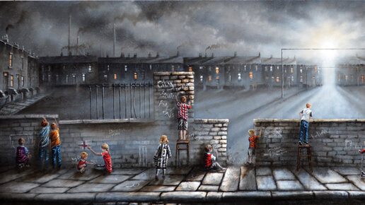 В работах Боба Баркера (Bob Barker), профессионального английского художника-самоучки ощущается дух картин художника викторианской эпохи Джона Эткинсона Гримшоу. Но если Гримшоу изображал реальный мир взрослых, ночной, мрачный, готический, то для Боба Баркера, темный, тревожный, вроде бы, враждебный город и задымленная фабричными трубами атмосфера становятся своеобразным фоном, оттеняющим краски и энергию детства, юности, зарождающейся любви… Здесь же я дам ссылку на рубрику и подборку публикаций по теме "Британские туманы...