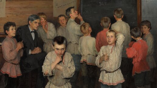 «Устный счет» Николая Петровича Богданова-Бельского — одна из самых известных картин на школьную тему. Почему художник выбрал именно этот сюжет? Чем знаменит учитель Сергей Александрович Рачинский, изображенный на картине? Рассмотрим полотно в деталях вместе с искусствоведом Яной Лагузинской. Небольшое по формату полотно, созданное в 1895 году, посвящено уроку математики в сельской школе. На первый взгляд выбранный художником сюжет очень прост и бесхитростен: скромное помещение с дощатыми стенами и изразцовой печкой, грифельная доска — и ватага оборванных крестьянских мальчишек...