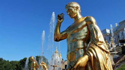 Большой каскад в Петергофе зимой и летом