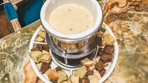 Подозрительно дёшево: сырное фондю, борщ с салом и французский луковый суп в помпезном кафе "Бонифаций"