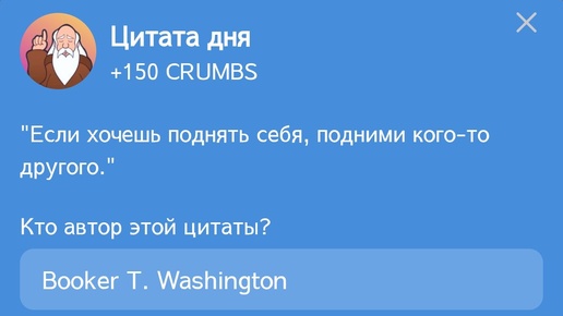 🥠 #Hrum: ЦИТАТА ДНЯ 16.07.2025 ✅ Переходим на вкладку Задачи -> Задачи ➡️ Выбираем Цитата дня ➡️ Вписываем ответ: Booker T. Washington 💰 И забираем 150 $CRUMBS 👍 если получилось Заходи в 🥠 Hrum ➡️ Старт: 29...