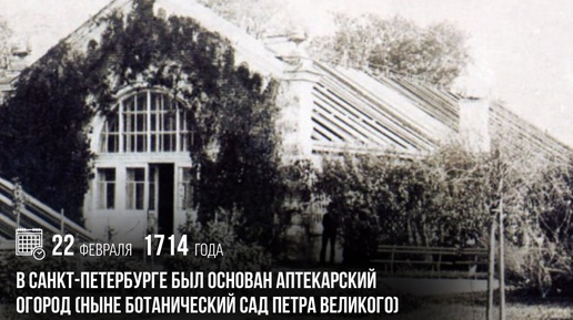 22 февраля 1714 года в Санкт-Петербурге был основан Аптекарский огород (ныне Ботанический сад Петра Великого)