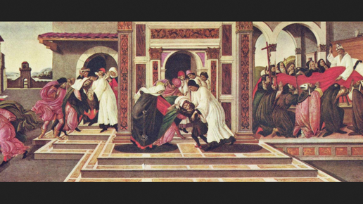 В Дрезденской галерее хранится повествовательная картина Сандро Боттичелли, перед которой можно стоять долго, разглядывая каждый фрагмент и чувствуя себя так, как будто читаешь книгу. Картина называется весьма информативно: «Эпизоды из жизни св. Зенобия Флорентийского: исцеление мальчика, перееханного повозкой, и предсказание его собственной смерти». Вытянутая в длину #картина четко делится на четыре части, в каждой из который представлен определенный эпизод. Перед глазами зрителя разворачивается панорама, повествующая о драматических событиях эпизод за эпизодом...