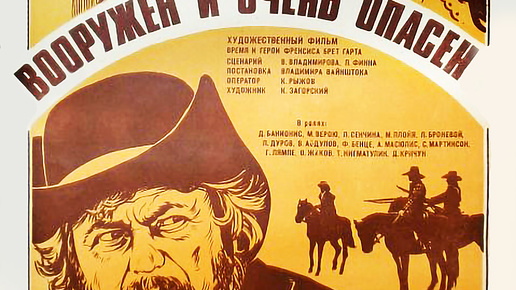 9 января 1978 года в советских кинотеатрах состоялся премьерный показ фильма «Вооружён и очень опасен» «Вооружён и очень опасен» (полное название «Вооружён и очень опасен. Время и герои Франсиса Брет Гарта») советский художественный фильм в жанре вестерна. Снят по роману «Габриэль Конрой» и рассказам Фрэнсиса Брета Гарта. Фильм в СССР посмотрели 39,3 млн зрителей. События происходят в конце XIX века на Диком Западе, в Америке. Во время тяжелого перехода через лес зимой на группу переселенцев нападают разбойники...