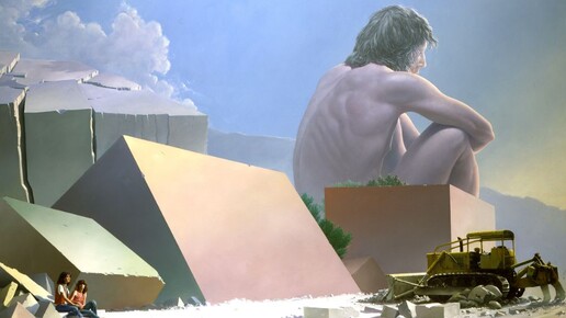 В этом обзоре я хочу познакомить вас с творчеством очень интересного французского художника БРУНО ШМЕЛЬЦА, который на своих сверхреалистичных картинах, граничащих со строгостью гиперреализма, создает порой сказочные миры с искаженными масштабами, где на фоне старых каменоломен с огромными монолитами и развалин старинных городов порой возникают гигантские фигуры... Все смешалось на огромных полотнах ( выполненные традиционной техникой " маслом на холсте " ) этого художника : кони, люди, сюрреалистические...