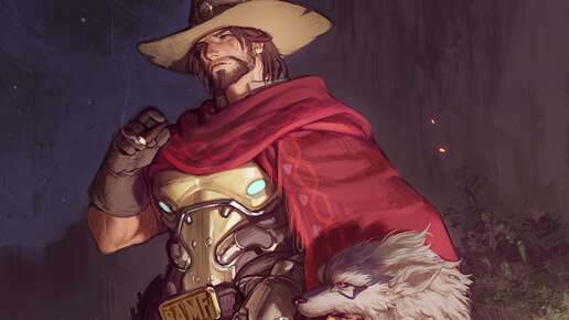 Мужчины, при взгляде на которых в голове начинает таинственно звучать гармошка, слышится топот конских копыт и скрип дверей в салун. Мужчины, которые соревнуются за звание самой быстрой руки на чёртовом диком западе... ковбои! Это всё для вас, дорогие читатели, для меня эти ребята - персонажи из печенья "Ваган вилс" и не больше. У каждого свои ассоциации :) Эти мужчины буквально сошли с экранов из фильмов Тарантино. Но на самом деле, практически на всех работах автора один и тот же персонаж - Mccre из игры Owerwatch...